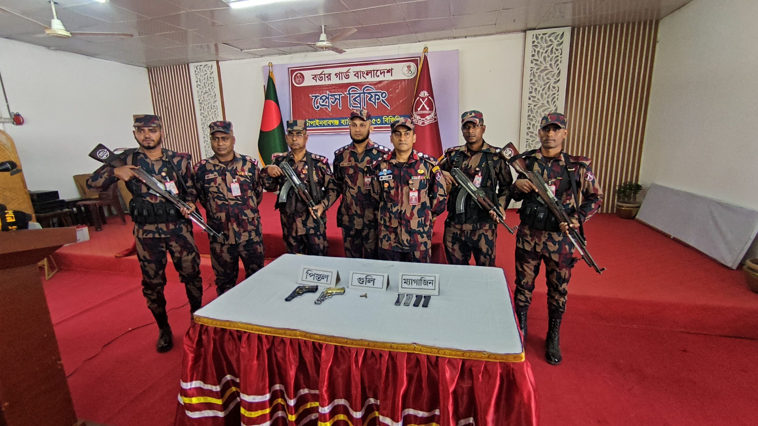 চাঁপাইনবাবগঞ্জ সীমান্তে বিজিবির অভিযানে বিদেশি অস্ত্র ও গোলাবারুদ উদ্ধার।